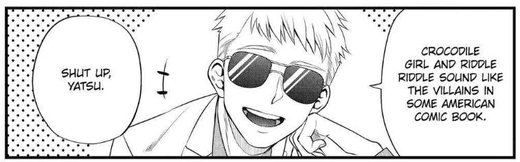 Le meilleur passage du chapitre c'est pour moi le moment où on a l'avis de Charlot sur Solitaire, et où on comprend bien pourquoi c'est un Troublemaker: le mec est réellement un bouffon, mais aussi un génie de l'impro qui comprend tout d'un coup d'oeil. C'est bien la première fois qu'il fait un peu peur ^^